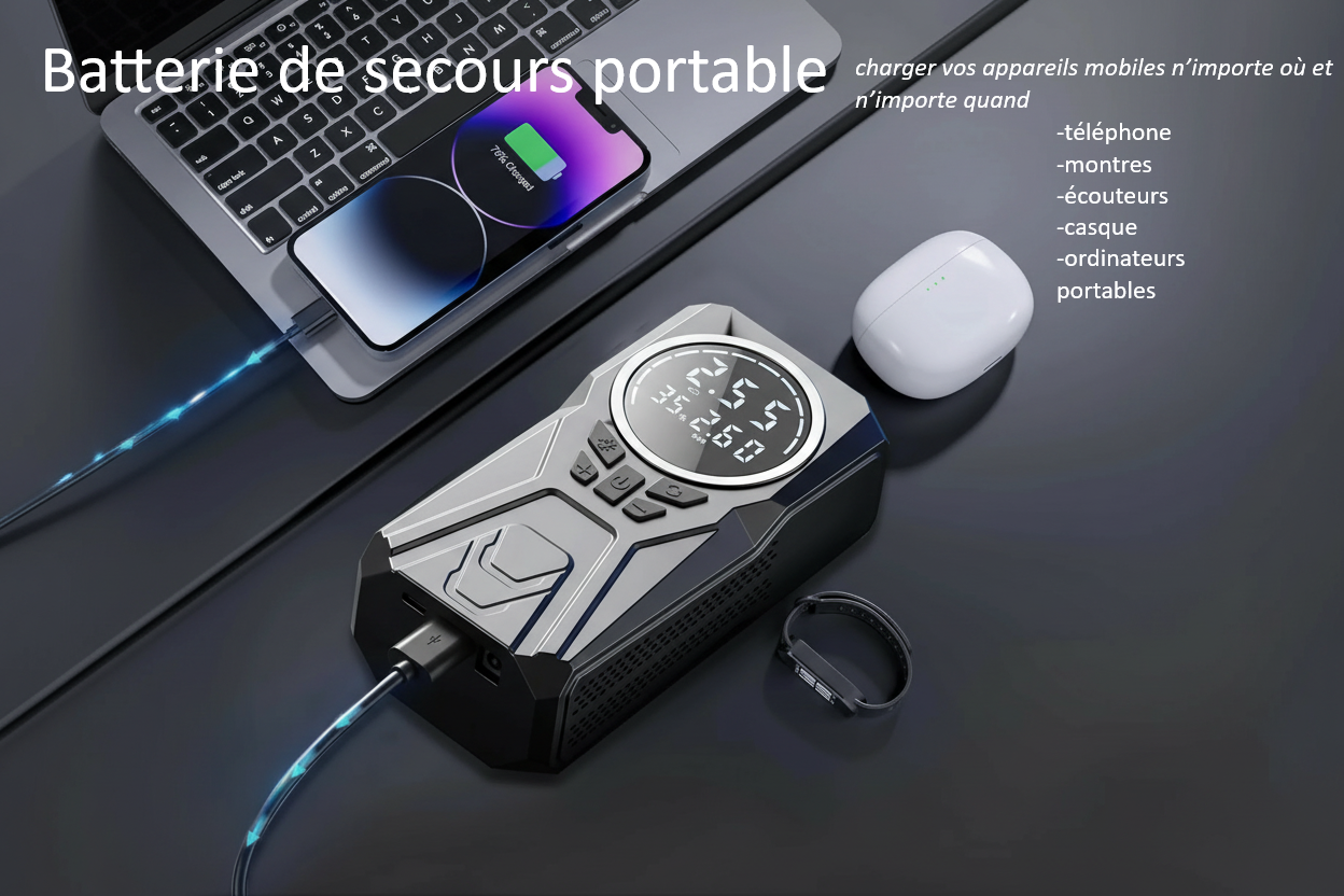 تعمل مضخة الهواء المتعددة التكافؤ على الاستجابة لجميع طلبات الاشتعال بسرعة وسهولة. إنها مليئة ببطارية متكاملة قابلة لإعادة الشحن، قادرة على تشغيل ما يصل إلى 4 أعمدة سيارة مع شحن كامل، وتوفر أداءً قويًا مع شعلة حتى ثلاث مرات أسرع من المضخات الكلاسيكية. تعمل مع محرك عالي القوة وضغط هواء يصل إلى 150 رطل لكل بوصة مربعة، مما يتكيف مع شعلة نفخ السيارة والدراجات وبالونات الرياضة وأكثر من ذلك. إنه تصميم صغير الحجم وسهل النقل والتنقل في السيارة أو في حقيبة، حتى يكون دائمًا مناسبًا للرحلات أو الاستخدام اليومي. تم تجهيزه بمصباح LED علوي متعدد الوظائف مع ثلاثة أوضاع (التوضيح – المنبه – SOS) ، مما يجعله أداة مثالية للاستخدام ليلاً والحالات الطارئة.