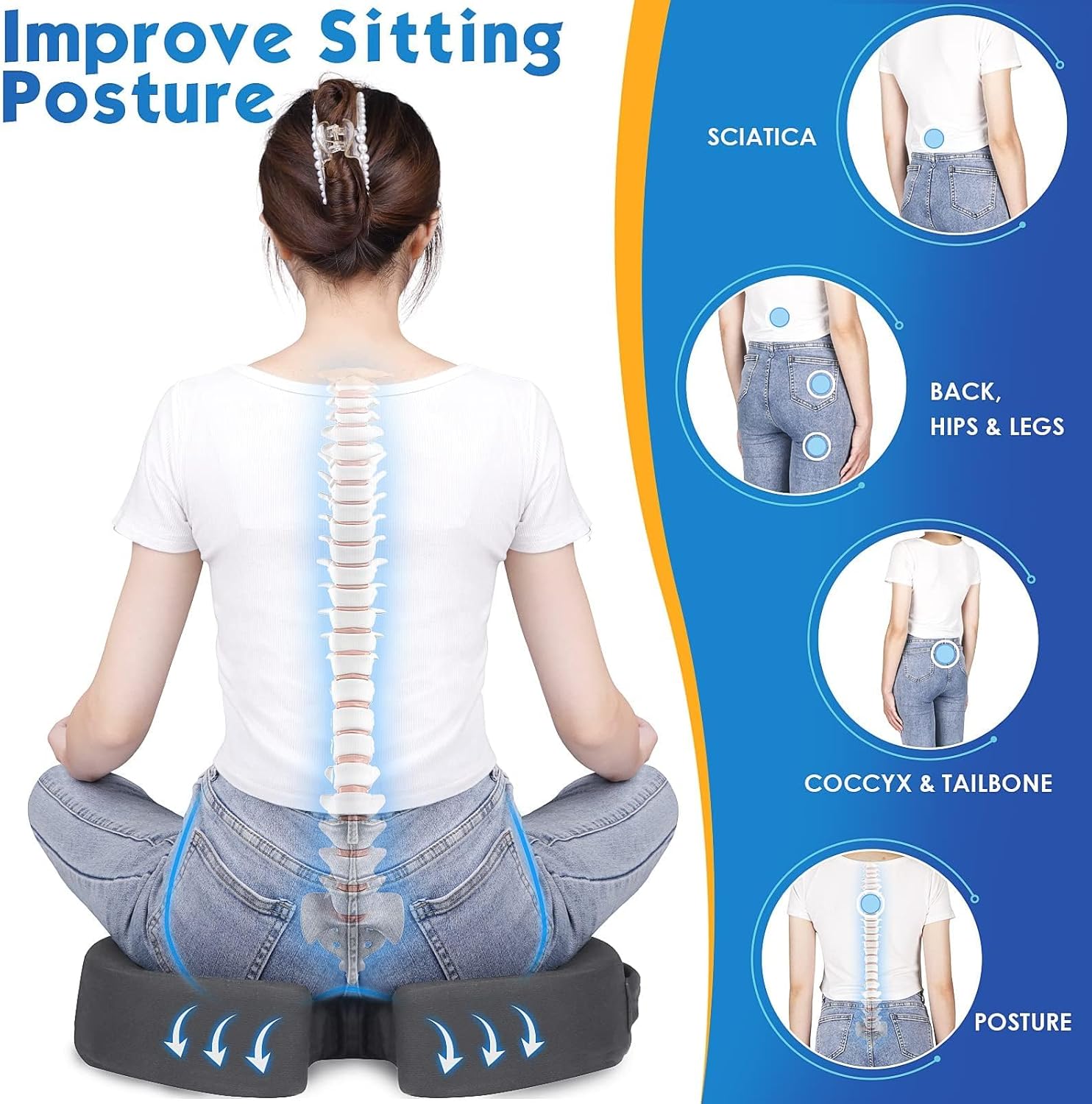 Design ergonomique : Un coussin de siège de bureau idéal, composé à 100 % de mousse à mémoire de forme qui aide à réduire la pression lors de la conduite ou d’une position assise prolongée. L’ouverture ergonomique en forme de « U » maintient le coccyx suspendu au-dessus de la surface dure du siège, diminuant ainsi la pression sur le dos, le coccyx et les jambes. Il contribue également à améliorer une bonne posture.